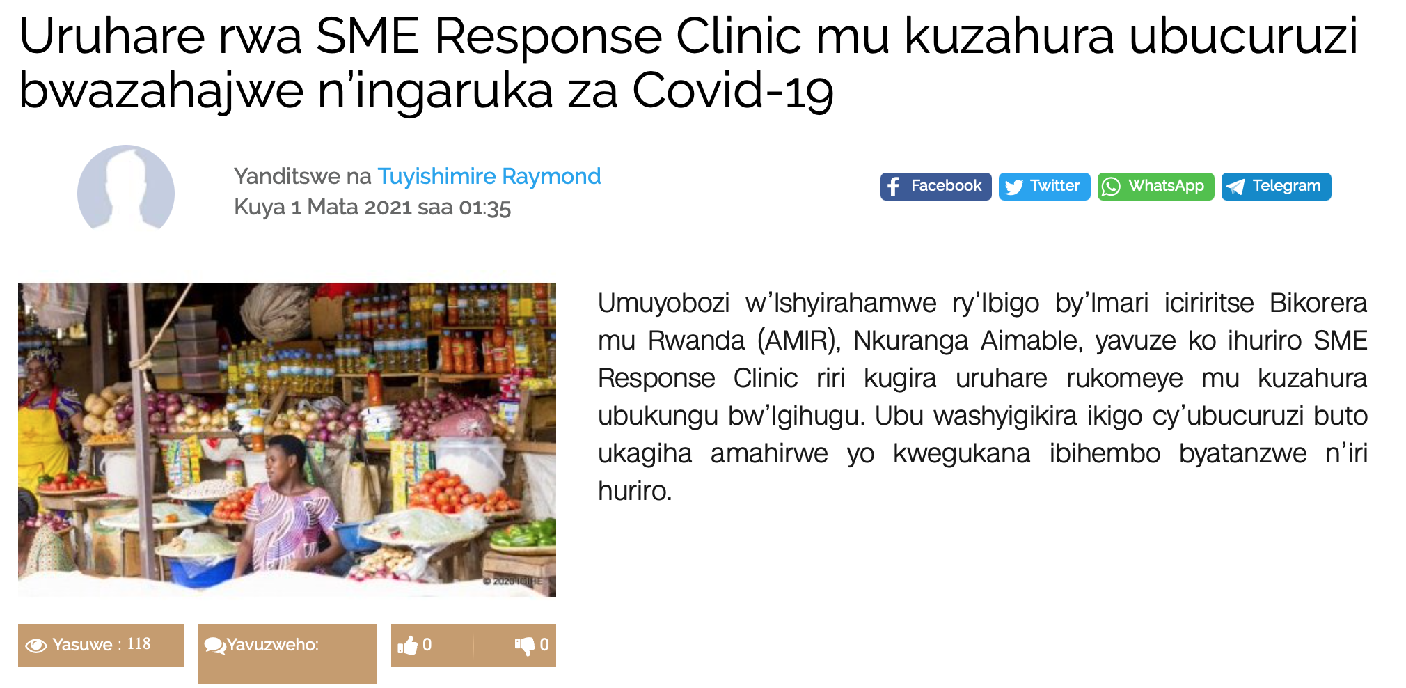 IN THE NEWS | Uruhare rwa SME Response Clinic mu kuzahura ubucuruzi bwazahajwe n’ingaruka za Covid-19