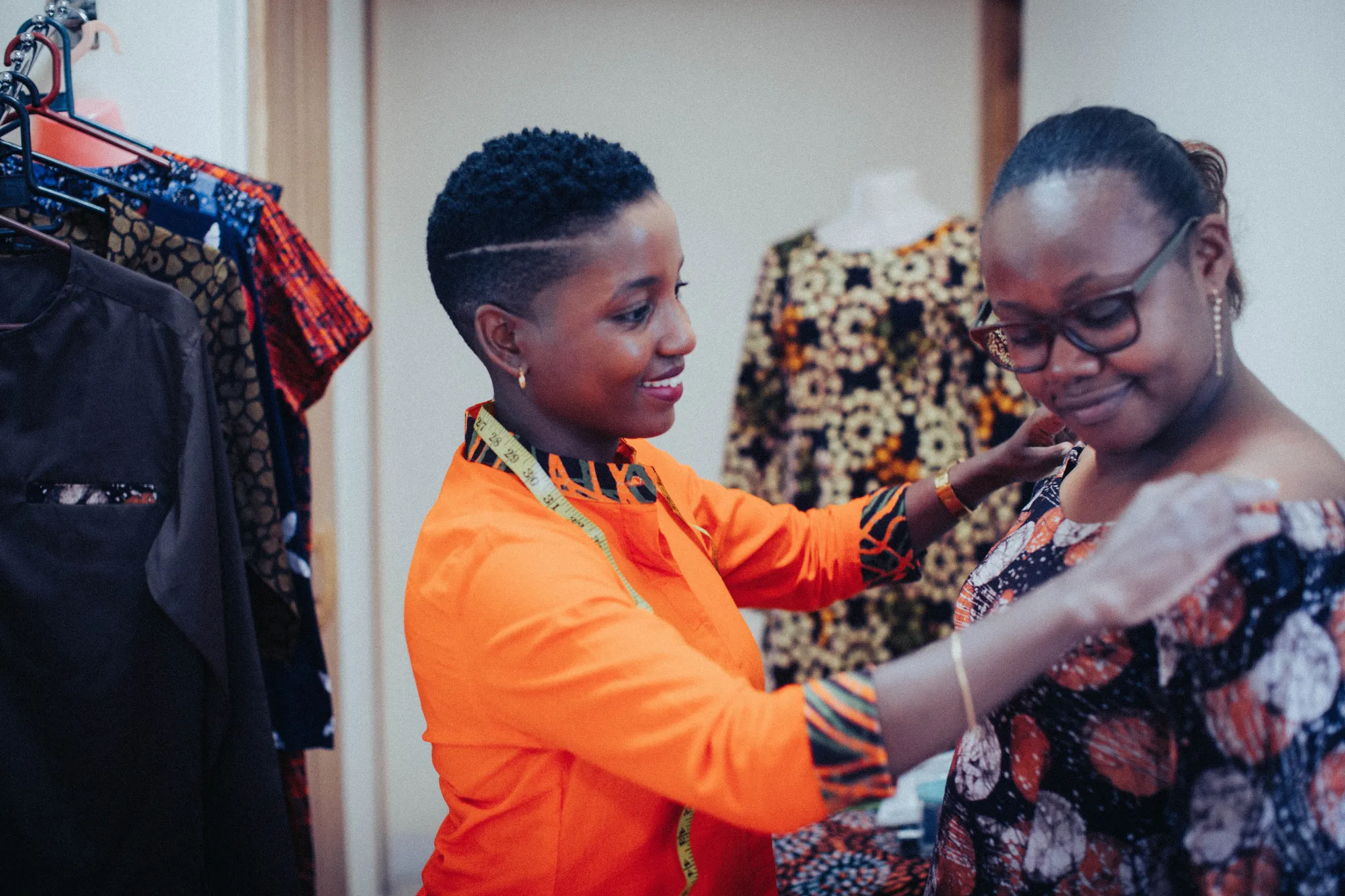 Wanjiru gives a customer outfit ideas.